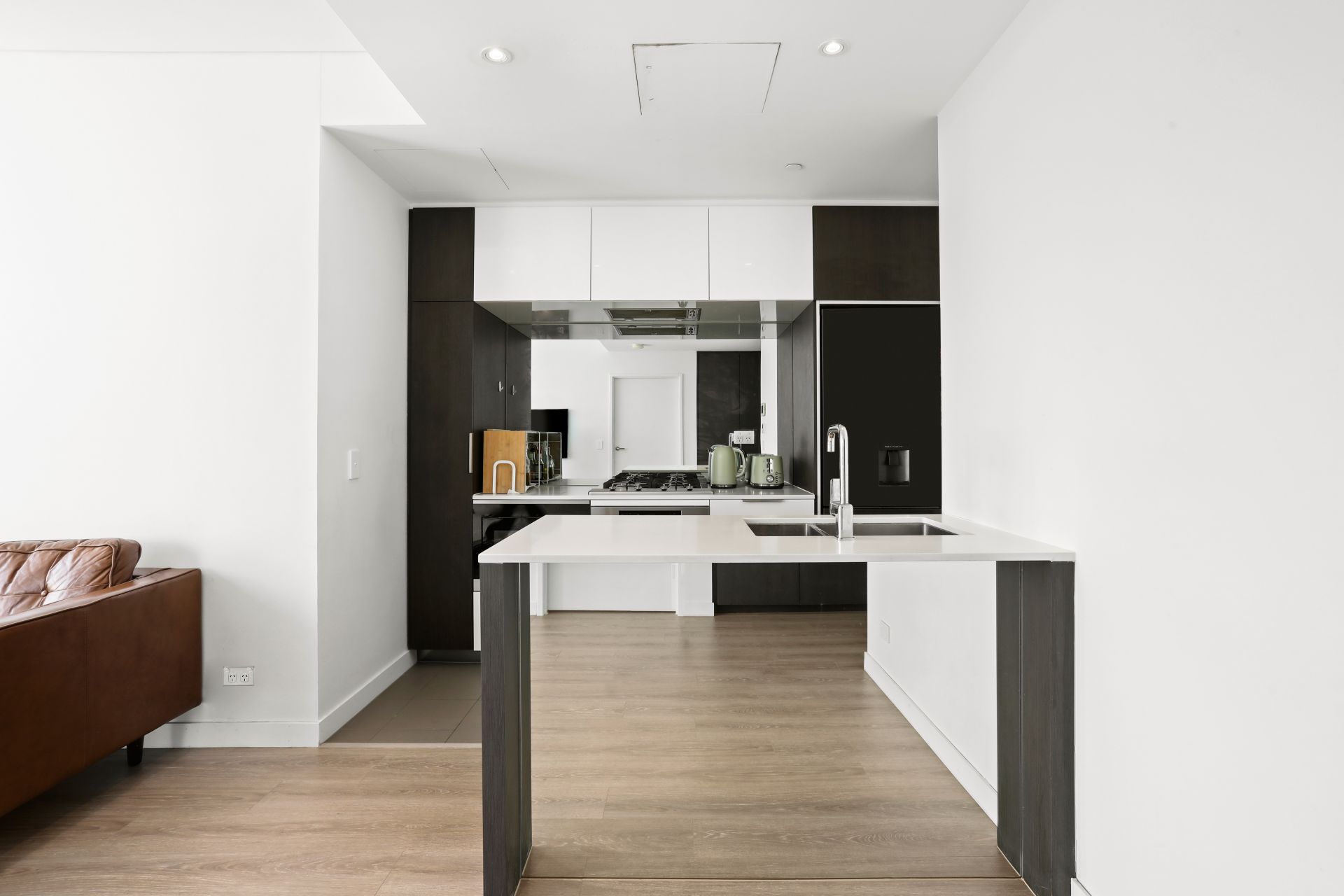 - Soft close drawers and LED strip lighting under overhead cupboards.